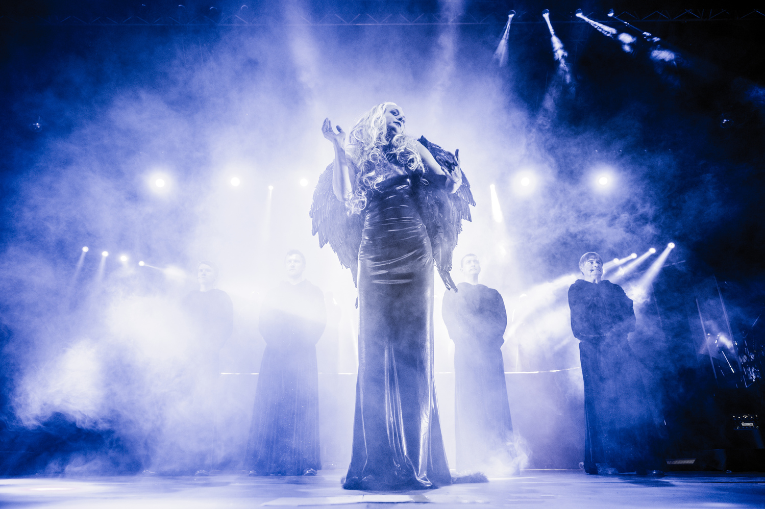 A köd, szél, tükrök, pirotechnika, látványos kivetítések és egyedi fényjátékok mind-mind az előadás vizuális élményét fokozzák.